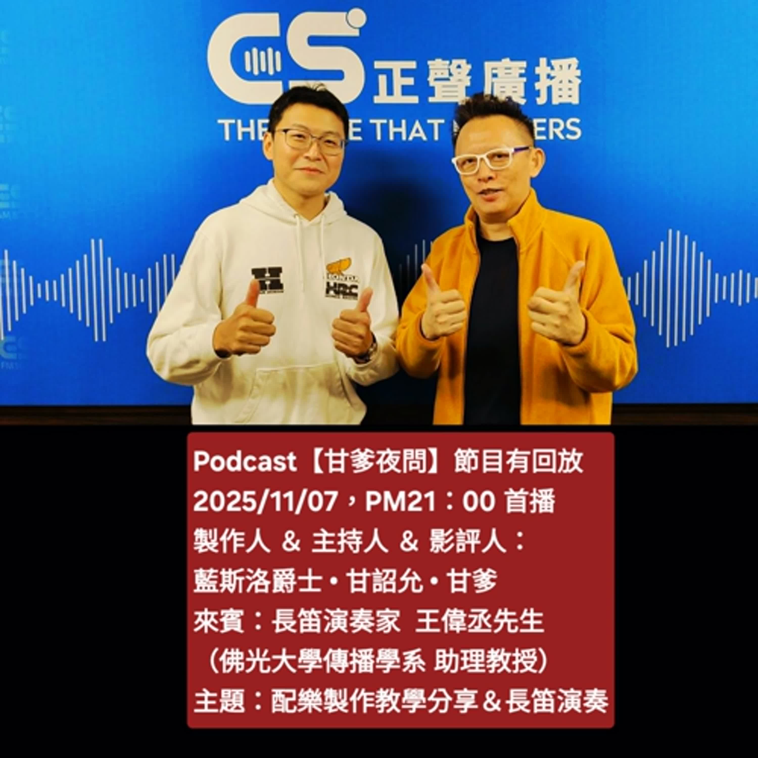 【EP026】來賓 佛光大學傳播學系的 助理教授「長笛演奏家」王偉丞;Cinema聯合國單元分享六部電影;當然,還有 甘爹原創歌曲的分享。