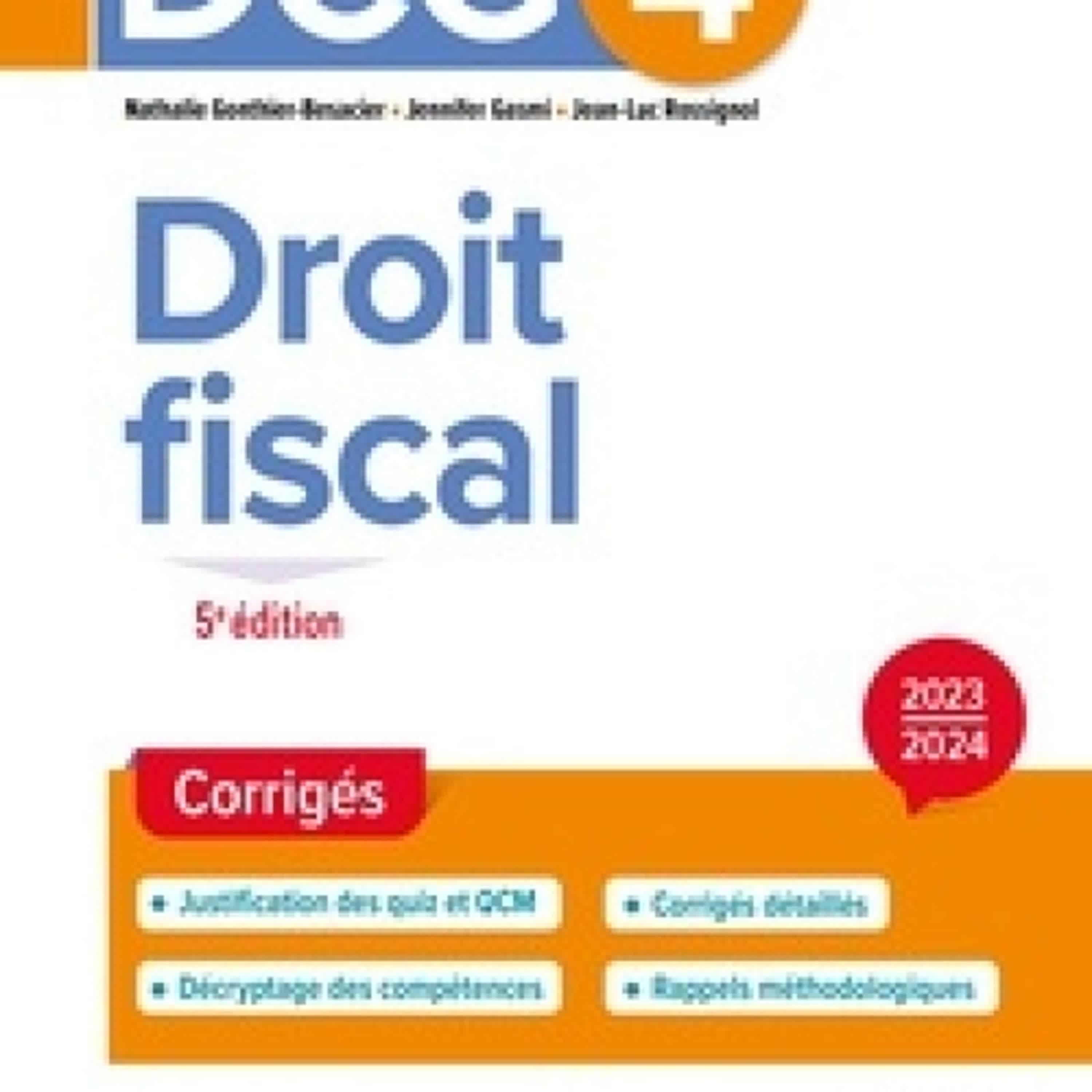 Livre DCG 4 - Droit fiscal - Corrigés 2023-2024 Télécharger le PDF - Nathalie Gonthier-Besacier, Jennifer Gasmi, Jean-Luc Rossignol
