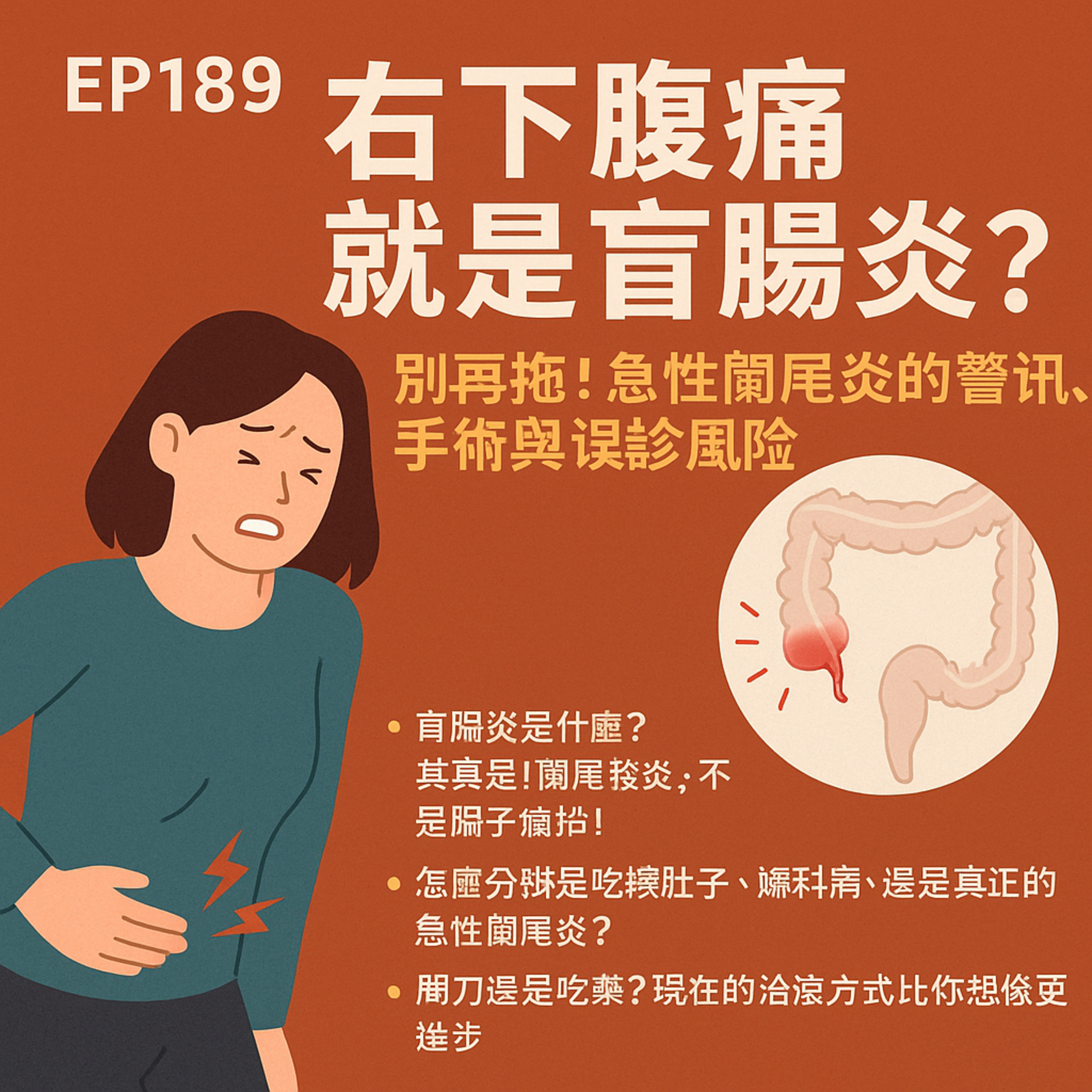 🎙️EP189|右下腹痛就是盲腸炎?別再拖!急性闌尾炎的警訊、手術與誤診風險