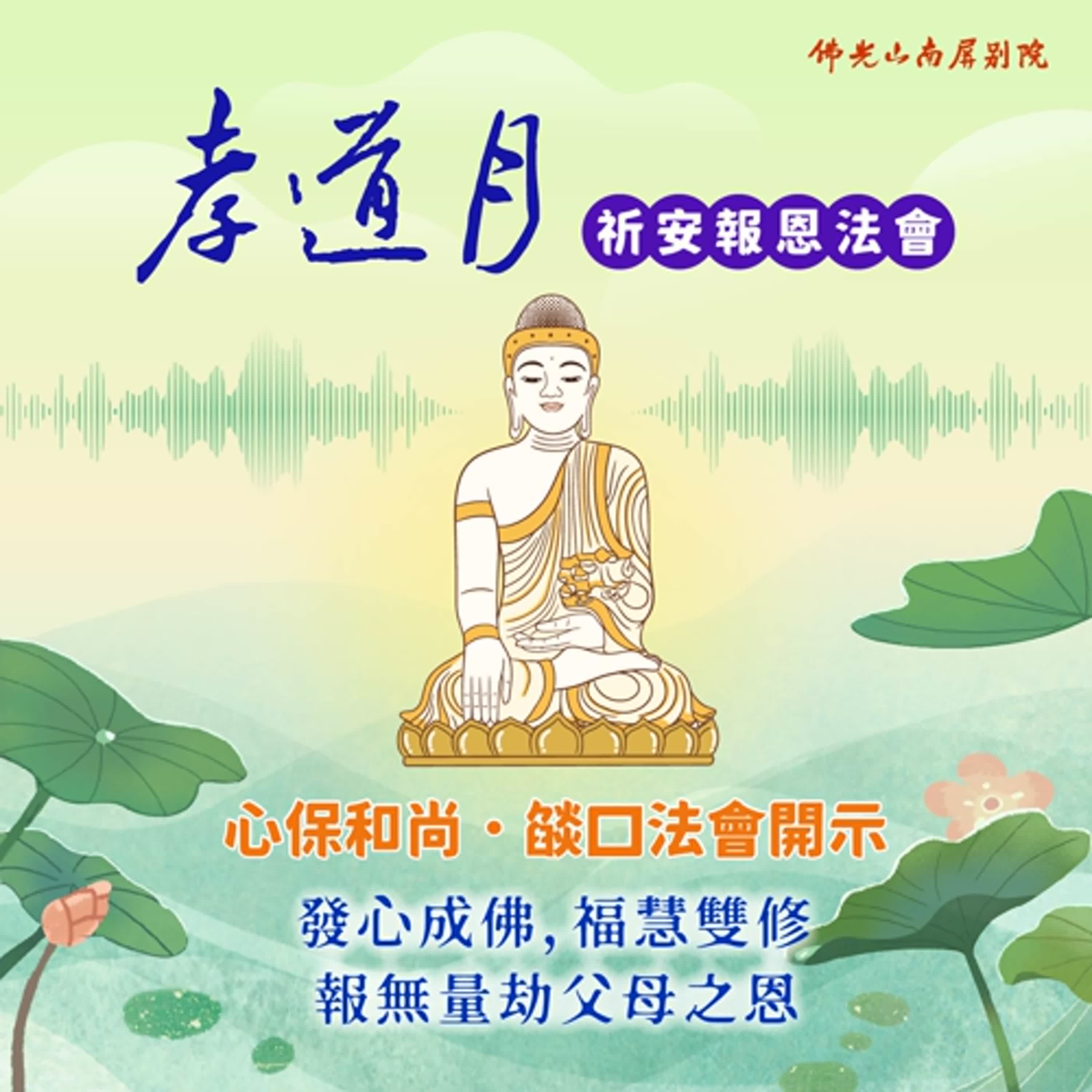 透過學習,大家會身心安定,會感受到世間有安樂之法、有幸福之道。所以七月的孝道月,我們也藉此因緣來提升自己,這個是最吉祥、最好的一件事情。