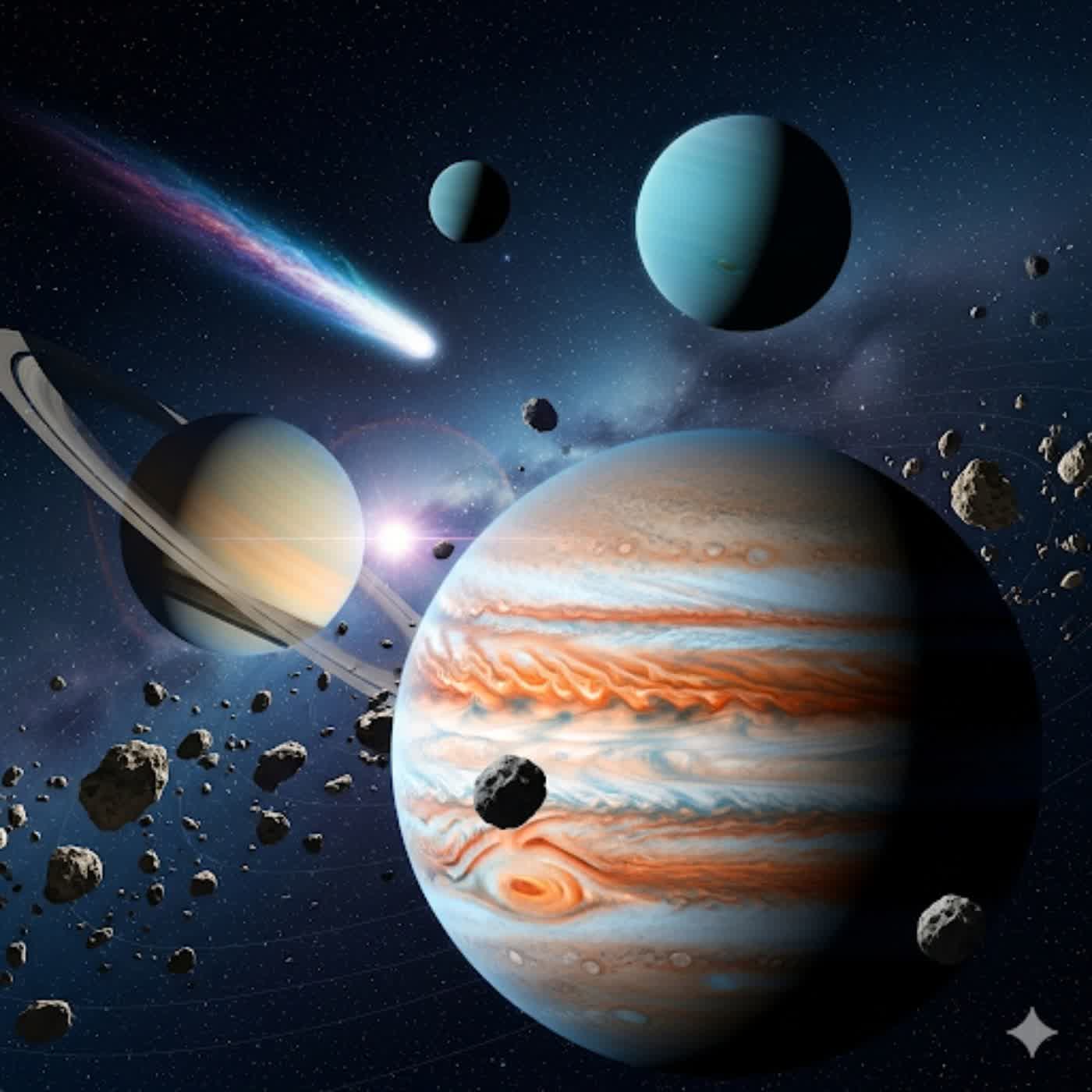 嘿!想知道太陽系裡住了哪些比地球大好幾百倍的「巨無霸」嗎?快跟我們一起飛越危險的小行星帶,去拜訪有著神秘大紅斑的木星、戴著漂亮呼拉圈的土星,還有躺著走路的怪怪天王星跟風速第一名的海王星!最後,我們還要看看為什麼冥王星從行星被「降級」了,以及拖著長長尾巴的彗星是從哪裡來的神秘訪客喔! -- 支持我們點個讚 https://yukai.ai/podcast/sci --Hosting provided by SoundOn