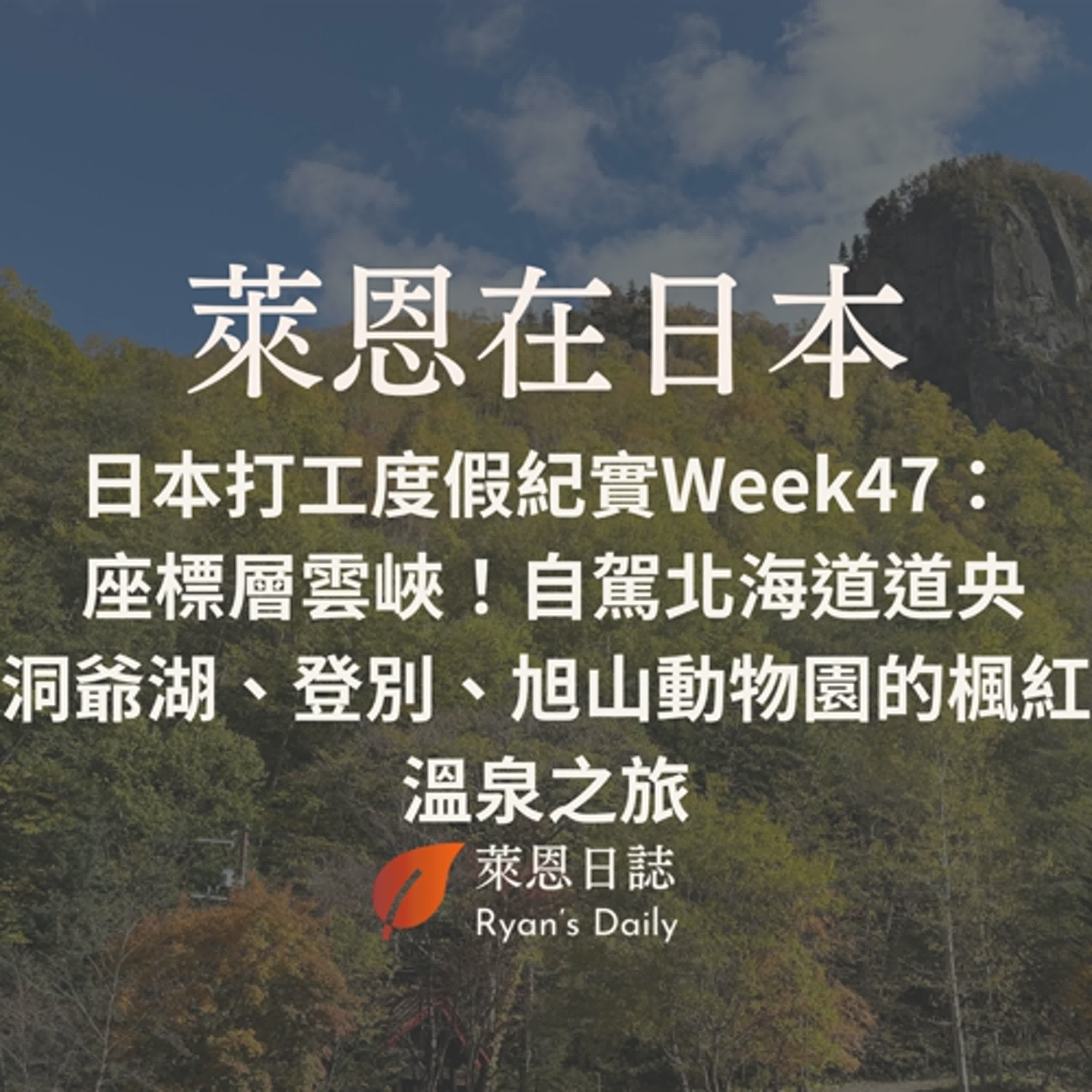 這集分享了包括租車(特別提到 Toyota Rental Car)的經驗、溫泉旅館(如 洞爺湖畔亭 和 層雲閣)的住宿體驗,以及在景點如 支笏湖、有珠山、地獄谷 等地,喜歡看楓葉泡溫群不要錯過!