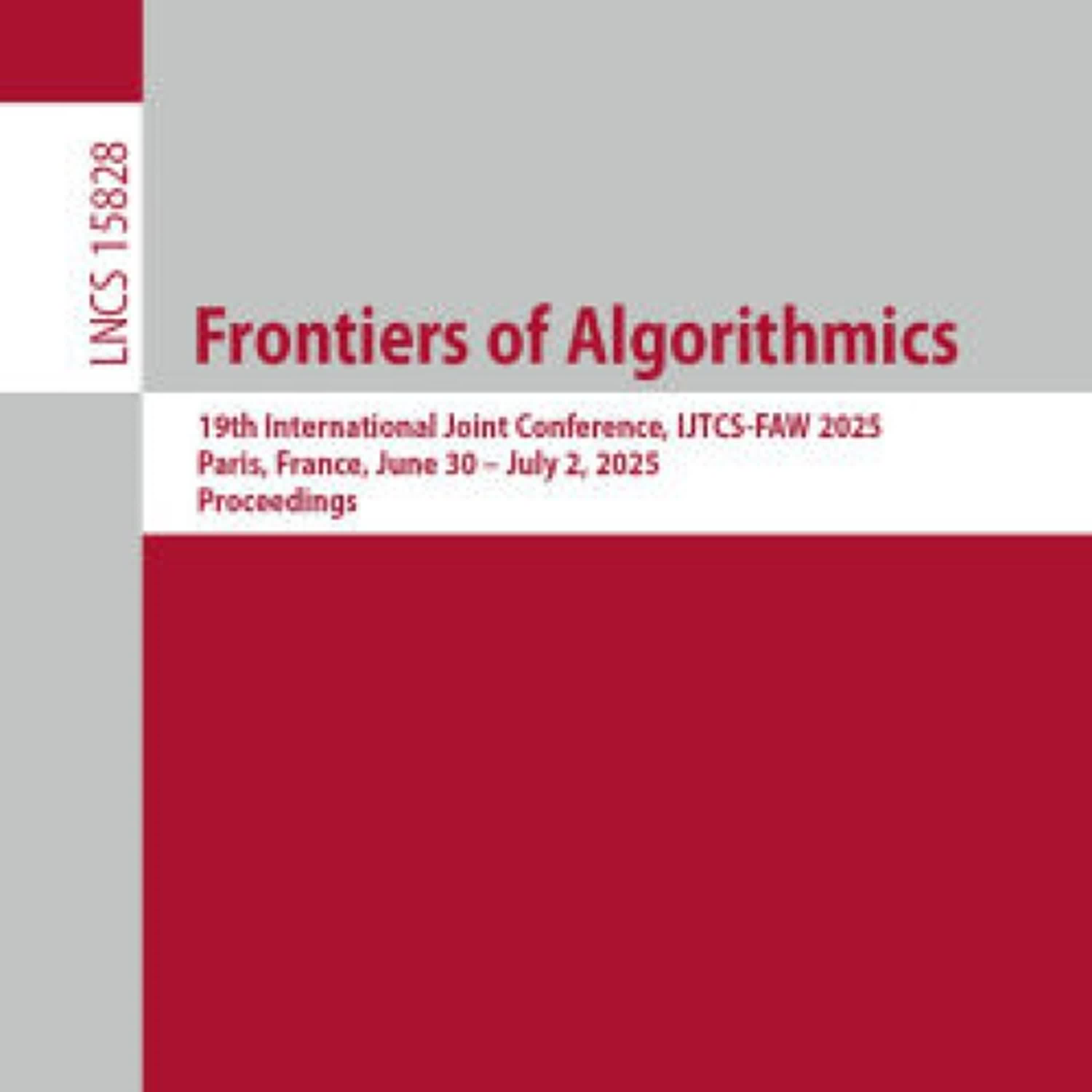 Book Frontiers of Algorithmics: 19th International Joint Conference, IJTCS-FAW 2025, Paris, France, June 30 - July 2, 2025, Proceedings PDF Download - Vincent Chau, Christoph Dürr, Minming Li, Pinyan Lu