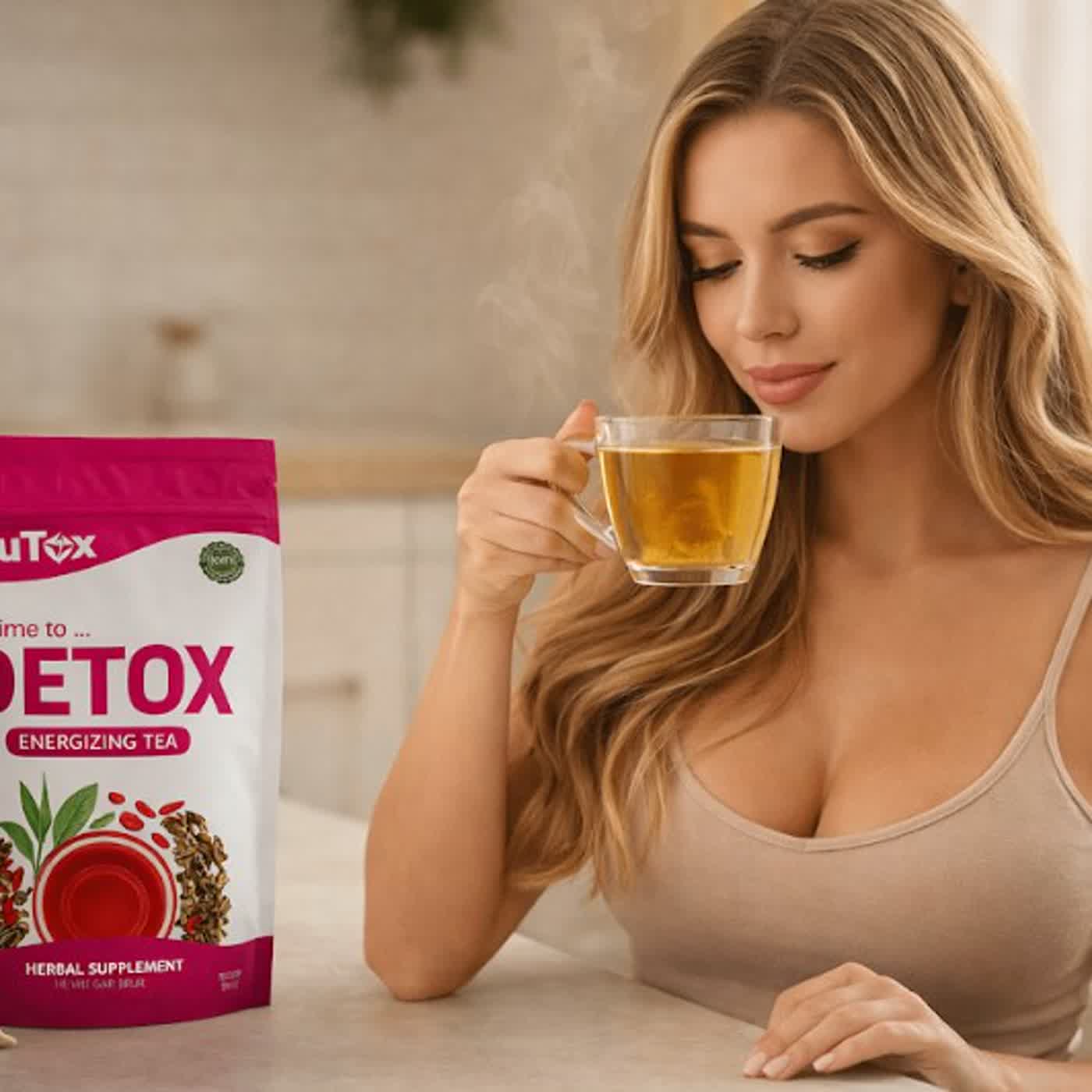 This tea is marketed as a daily wellness drink rather than an extreme detox. It aims to improve gut health, reduce bloating, support fat metabolism, and promote a lighter, more energized feeling—without aggressive laxative effects.