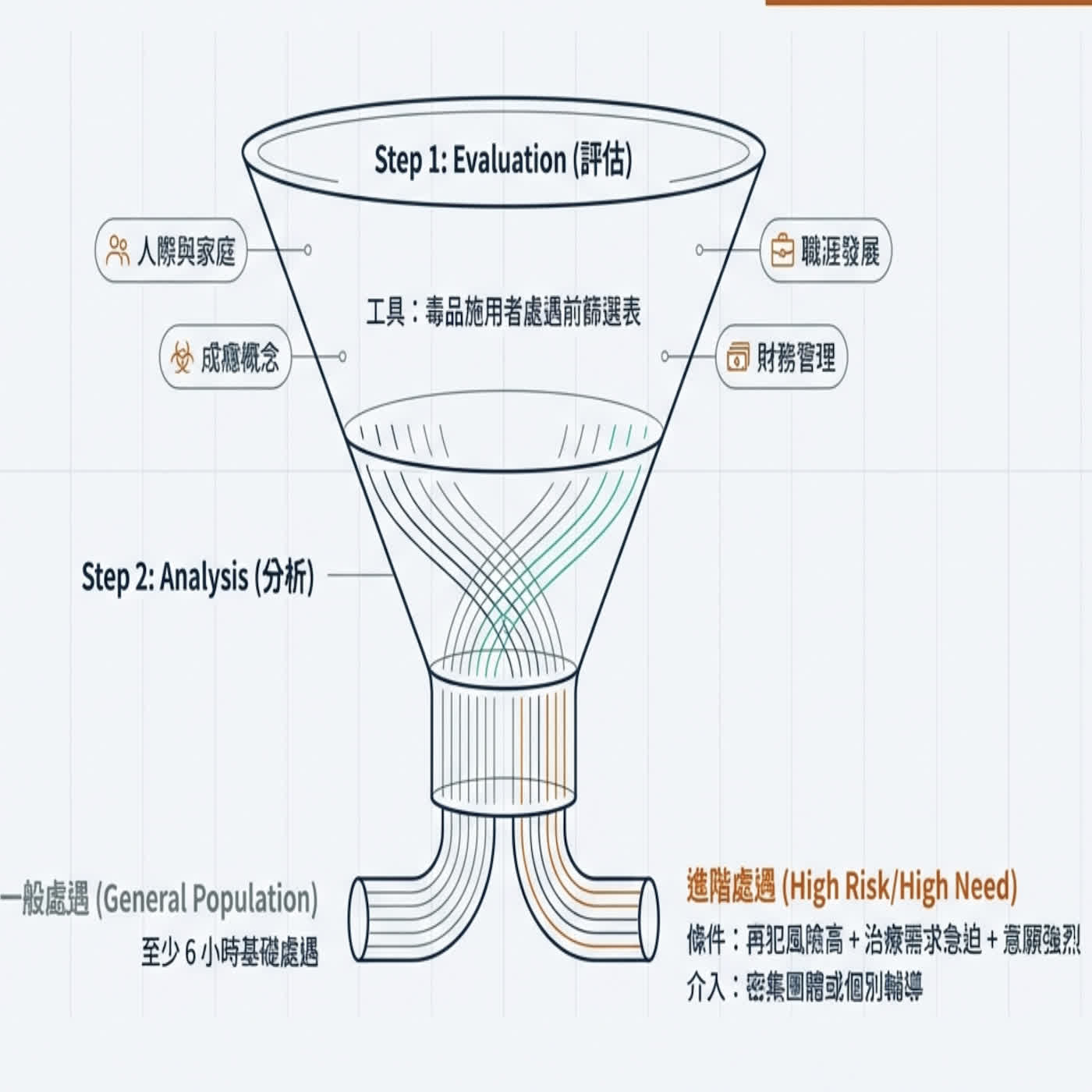 留言告訴我你對這一集的想法: 探討了毒品使用者個體化處遇流程的轉型,強調將過去模糊的戒毒過程轉化為一套科學化與數據化的精密系統。核心理念在於運用 RNR 模型(風險、需求、反應性)進行精準診斷,透過多樣化的量表建立治療基準線,藉此客觀追蹤個案在生物、心理及社會層面的進步。為了確保復原成效能從監所無縫銜接至社會,系統設計了三階段處遇流程,並結合衛政、勞政、社政與矯正單位的四方連結機制。最終,這套流程不僅是冰冷的行政表格,更是為每位使用者量身打造一張獨一無二的回家地圖,試圖在有限的資源下,透過適性處遇實現最有效的內在改變與社會重整。