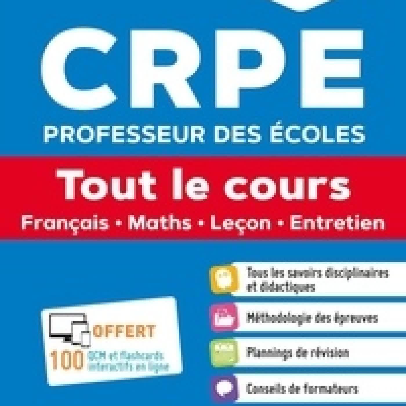 Télécharger ou lire en ligne CRPE Professeur des écoles. Tout le cours - Français, Maths, Leçon, Entretien Edition 2026-2027 Livre gratuit (PDF eƤub Mobi) pan Marc Loison, Audrey Hennart, André Mul, Isabelle Pasquier.