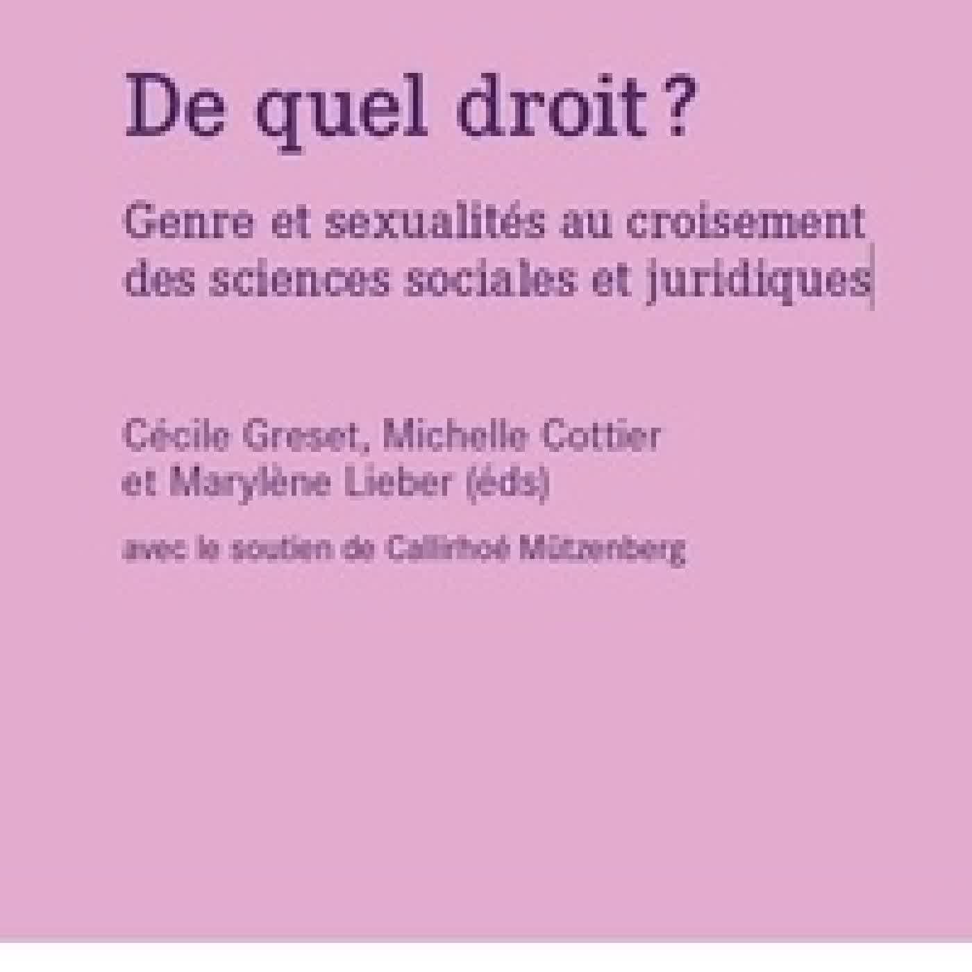 Télécharger ou lire en ligne De quel droit ?. Genre et sexualités au croisement des sciences sociales et juridiques Livre gratuit (PDF eƤub Mobi) pan Cécile Greset, Michelle Cottier, Marylène Lieber.
