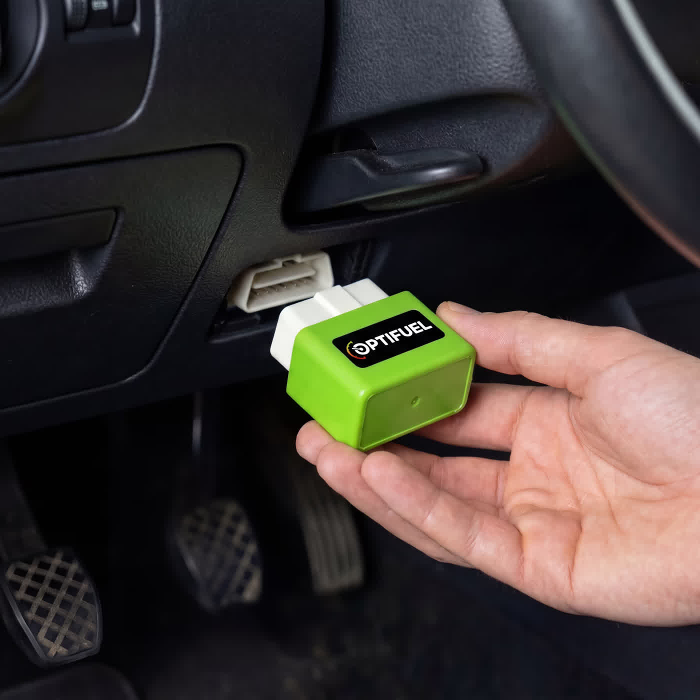 OptiFuel UK is a small plug-in automotive device designed to optimize your vehicle’s fuel consumption. It connects directly to your car’s OBD2 (On-Board Diagnostics) port, which is typically located under the dashboard.