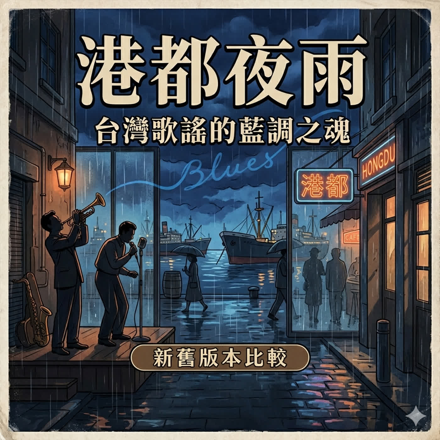 〈港都夜雨〉是台灣歌謠史上最具代表性的作品之一,由楊三郎作曲、呂傳梓作詞。這首歌最早在 1951 年由吳晉淮首唱,因其憂鬱的藍調(Blues)色彩與港口漂泊的意境,成為無數歌手展現唱功的首選。特別的是,作詞人也是楊三郎老師樂團當中的薩克斯風手,原本這首歌是楊三郎老師的小喇叭演奏曲(雨的Blues),因為呂老師太喜歡這個旋律,所以於是填上的歌詞。這更是早期台語歌謠當中兼具藍調爵士的重要作品之一,可以說是前三名的作品。之前在編曲的單元當中,有跟大家提到,live的編曲和電子合成器的編曲當中的差異。這一集節目我們跳開一下,我們跳到楊三郎老師的經典作品〈港都夜雨〉,從這首歌一開始的版本看到早期台灣爵士藍調的樣貌,再透過不同的版本比較,讓大家看看後來的人如何重新演繹,重新詮釋,透過不同的編曲來演唱這首歌曲。這是一首不好挑戰的歌曲,從演唱到編曲都一樣,所以我們也可以看到後來的版本企圖突破框架,每一個版本都非常的用力,你會喜歡哪一個版本呢?可以跟我分享。