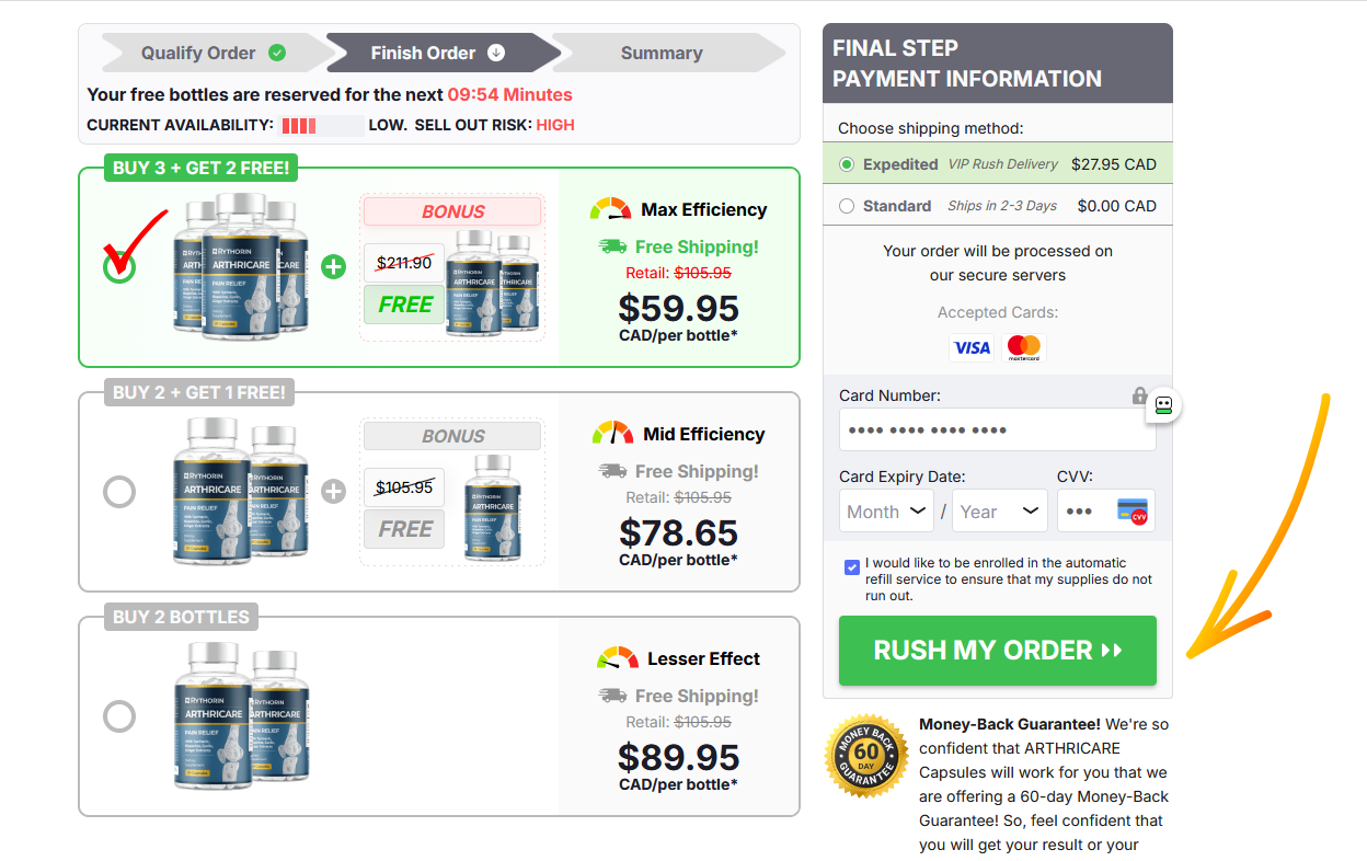 Rythorin Arthricare Capsules are typically available through official websites and select online retailers. Pricing may vary depending on promotions and package deals.