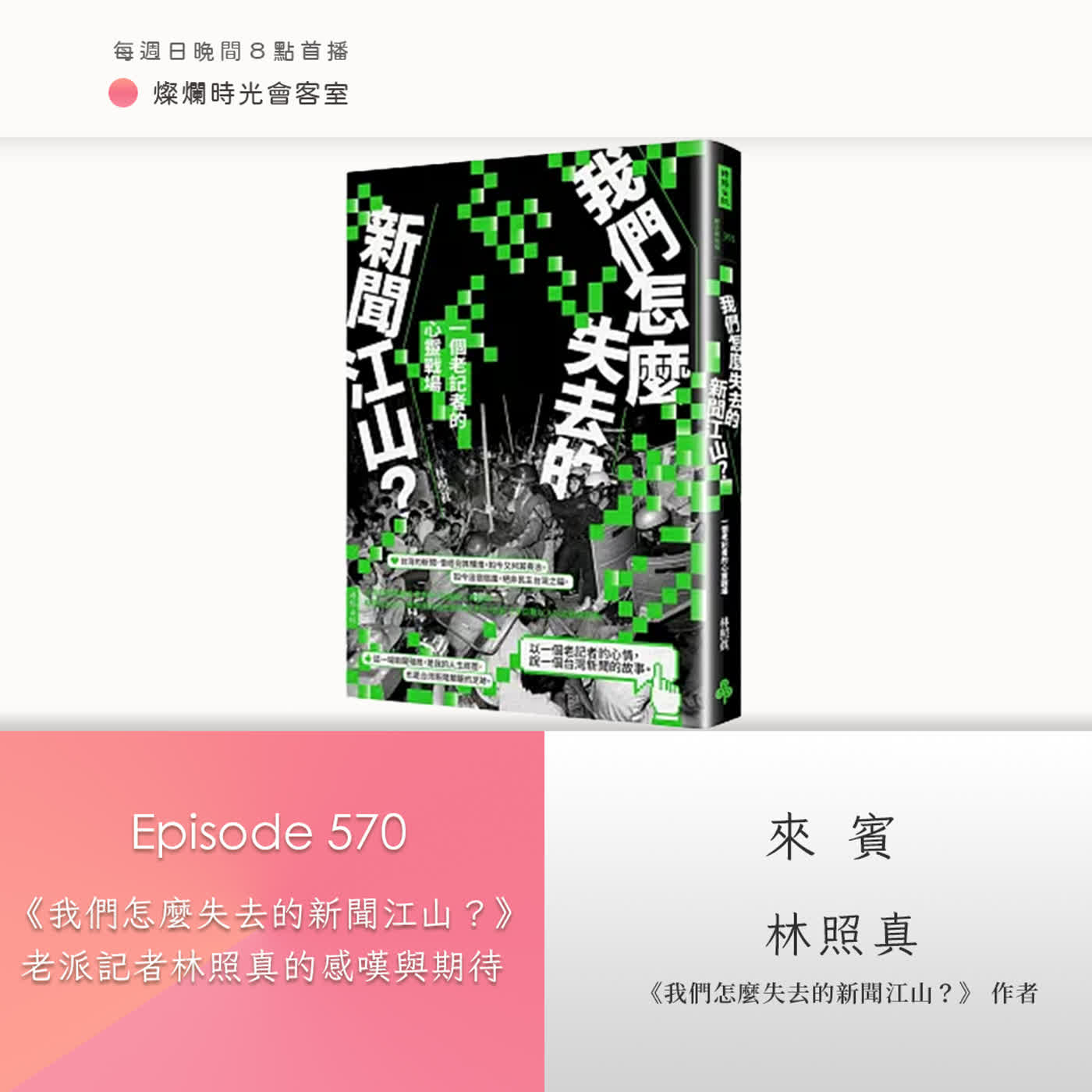 本週《燦爛時光會客室》邀請林照真與我們聊聊他的新聞人生,這本大眾書寫平易近人,即便充滿焦慮與沉重,能看到作者用大量訪談加上學術觀點,以新聞現實提出許多討論,就像是讀了關於台灣新聞媒體的深度報導。