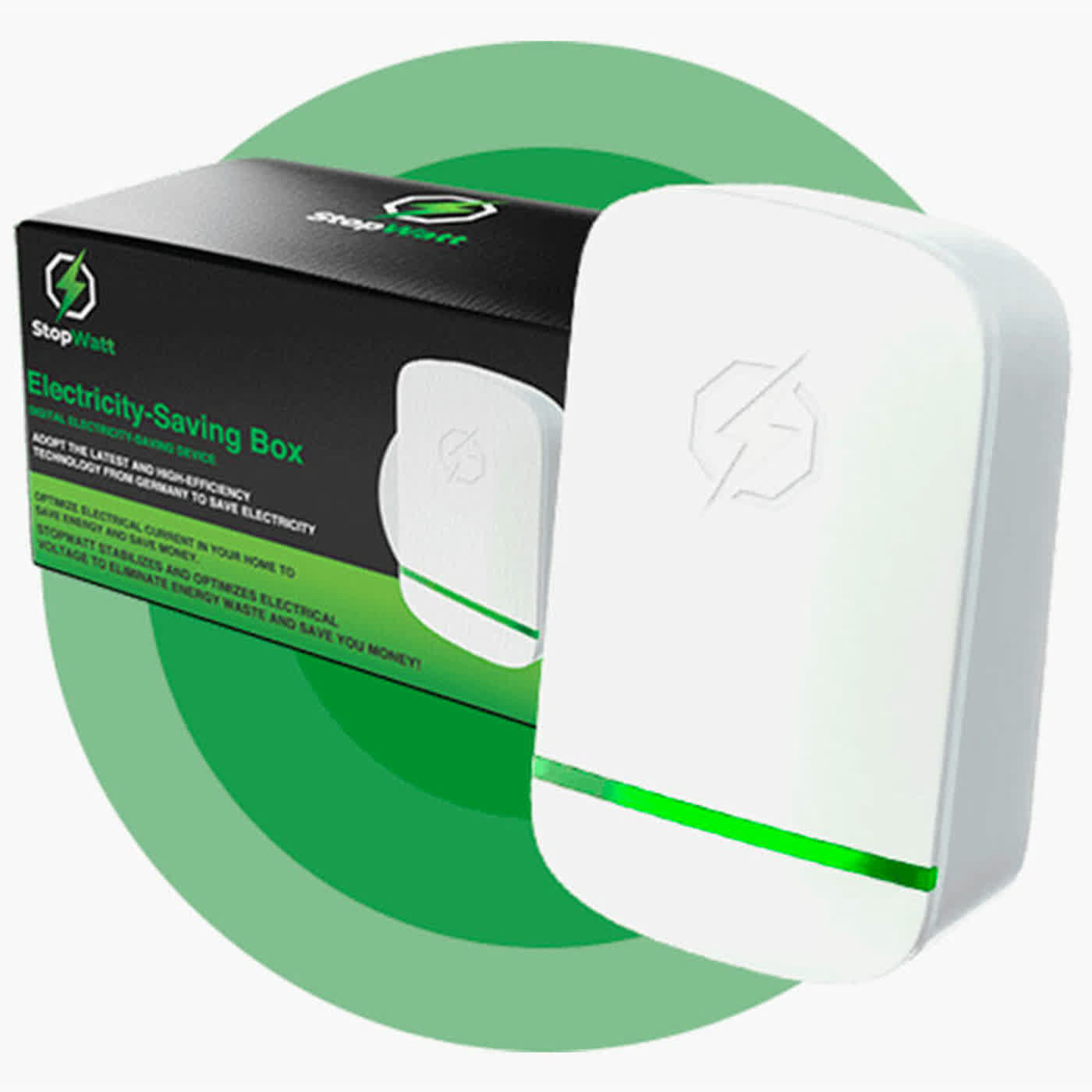 StopWatt is marketed as a plug-in electricity-saving device designed to optimize the power flow in your home. According to its manufacturers, it helps reduce “dirty electricity,” stabilizes voltage, and improves the efficiency of your electrical appliances.