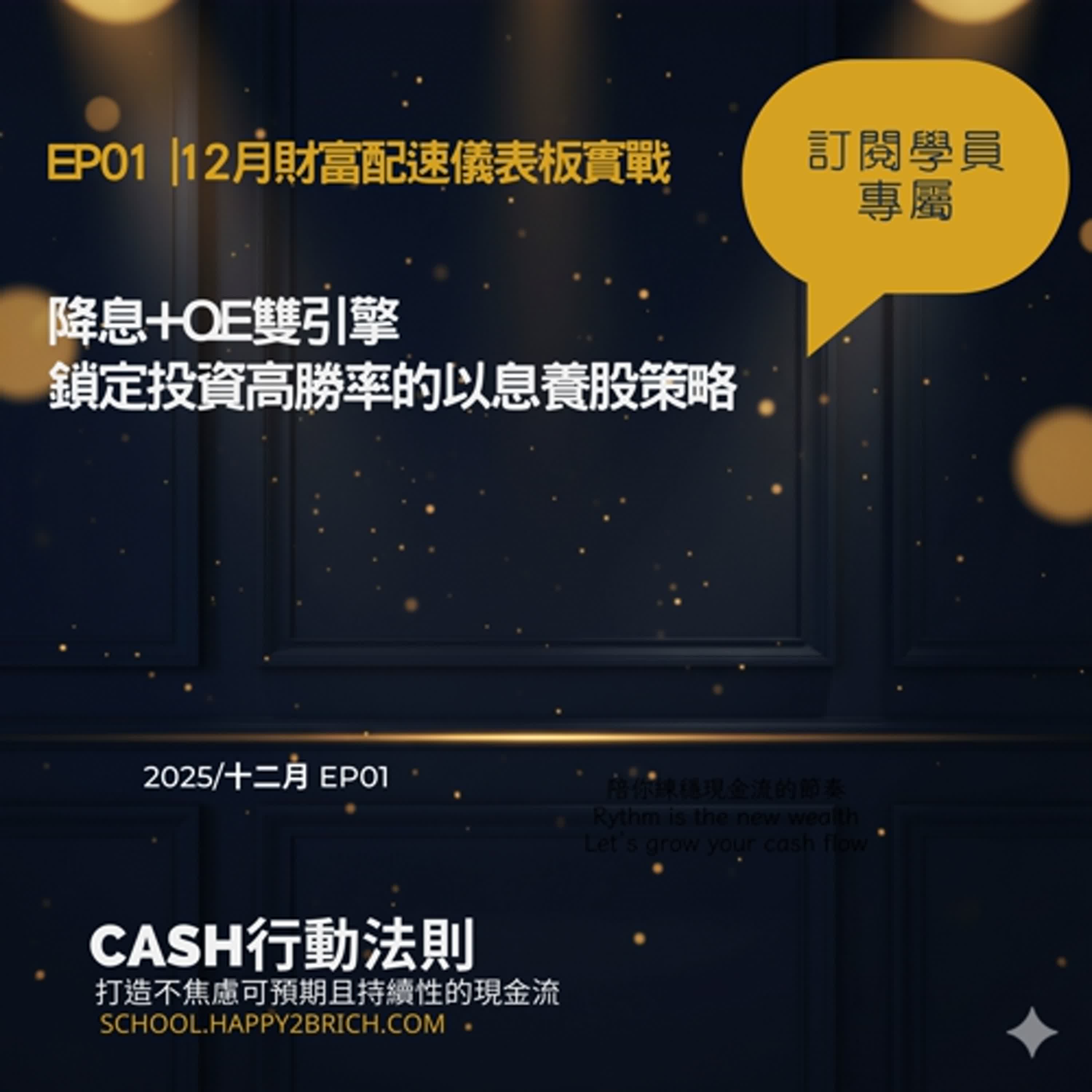 Yearly#MKCASH陪跑學苑 #財富配速儀表板 #降息循環 #QE重啟 #以息養股 #高勝率投資 #高配息2 #資產配置 #現金流系統 #投資理財 #2026投資趨勢 本集 EP01 實戰課程將聚焦於 1...